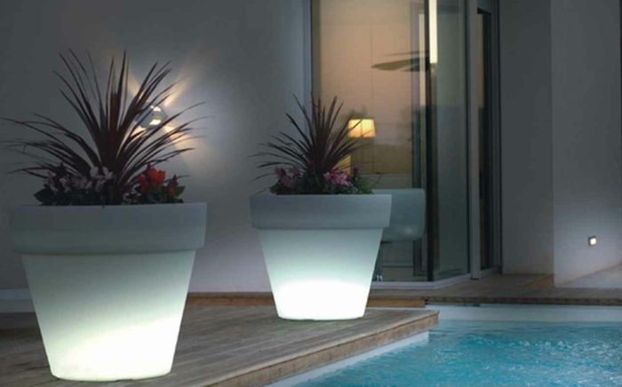 Pot de fleur lumineux jardine piscine deux blanc grand pots