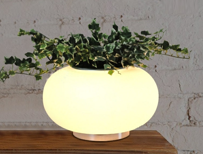 Pot de fleur lumineux jardine ronde pot verte plante