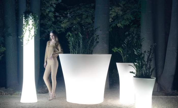 Pot lumineux plantes vertes femme grands pots