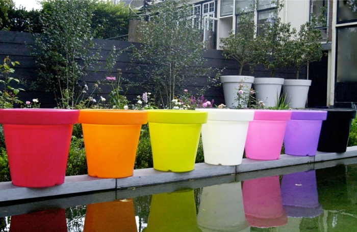 Lampe exterieure pot de fleur pots colorées