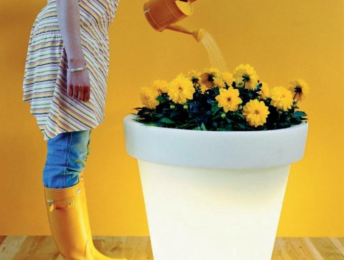 Le plant vert dans un pot fleur lumineux fleurs jaunes