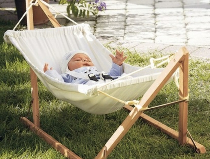 Hamac balancelle jardin pelouse verte hamac sur pied pour le bébé nature et decouverte hamac