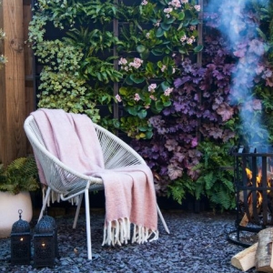 Pour l’ambiance, superposez les sources : une guirlande guinguette (une bonne coûte entre 40 et 80€), quelques spots solaires à piquer dans les pots pour mettre en valeur une plante, et bien sûr des bougies. Mais toujours dans des lanternes en verre ! J’ai déjà vu un début d’incendie à cause d’un plaid qui avait glissé sur une bougie posée au sol. On ne plaisante pas avec ça.