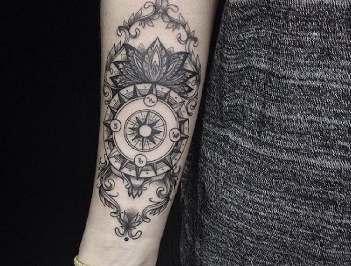 Design original de tatouage compas signification fleur de lotus symbole tatouage fleur de lotus