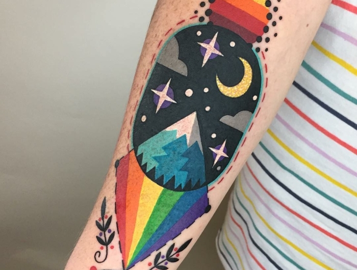 Coloré dessin prisme de montagne abstrait tatouage symbolique tatouage homme épaule tatouage liberté inspiration dessin original stylé