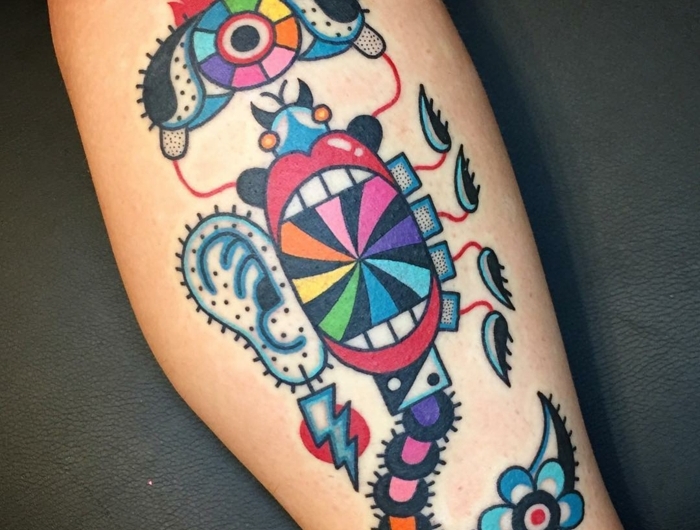 Coloré tatouage abstrait levres oreille original design scarabei et visage distruction tatouage homme épaule le plus beau tatouage du monde modele a choisir