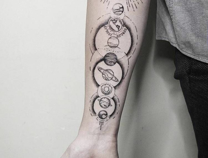Cool idée tatouage main les planettes de la système solaire tatouage graphique idée tatouage homme chouette femme tatouage