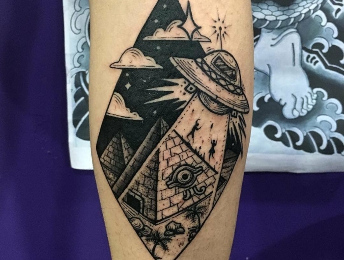 Cosmus et extreterrestres interpretation realisation d ou viennent les pyramides idée tatouage homme style de tatouage originale dessin tatouage main