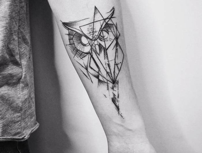 Hubou graphique dessin original tatouage graphique idée tatouage homme chouette femme tatouage aussi
