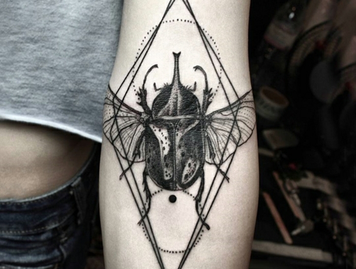 Minimaliste geometrique tatouage simples lignes et points noir encre tatouage avant bras tatouage fleur modele de tatouage cool idée originale pour un tatouage chouette