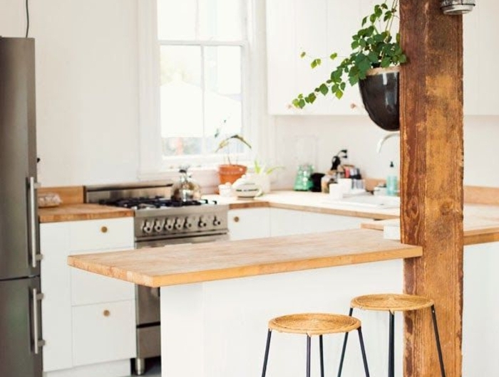 1 cuisine americaine amenagement petite cuisine avec un bar de cuisine et chaises de bar