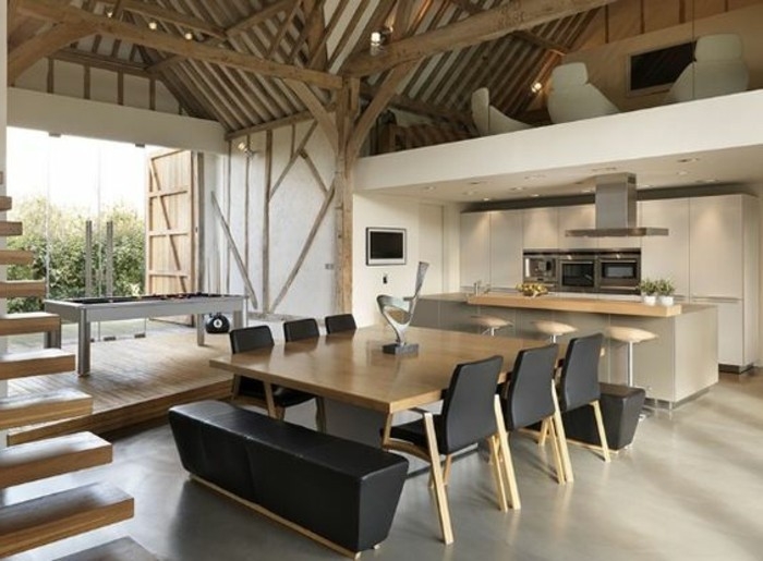Salon sous combles sol en beton ciré gris meubles de salle de sejour sous combles