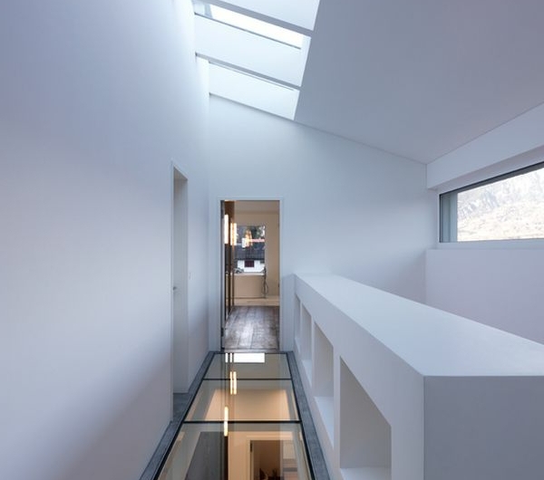 Plancher de verre un couloir blanc élégant
