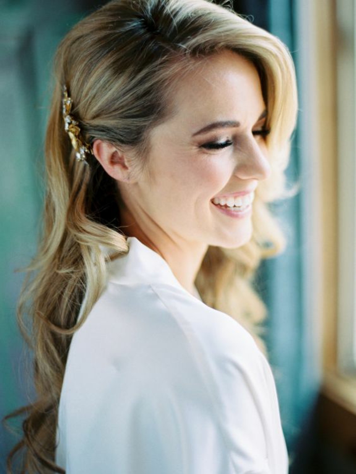 Le secret pour qu’elle tienne ? Croisez les épingles en X pour une fixation maximale. C’est une astuce de base pour les coiffures de mariée.