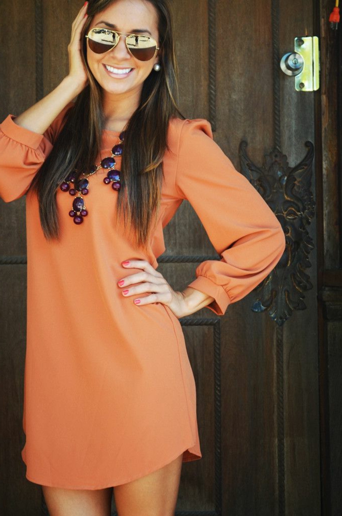 - Un sautoir long pour dynamiser une tunique unie.