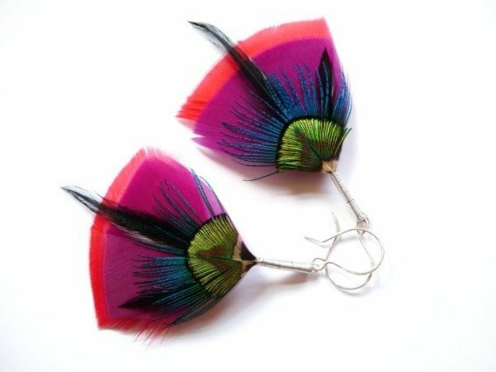 Boucle d oreille plume de paon original coloré_pour les filles qui aiment la mode