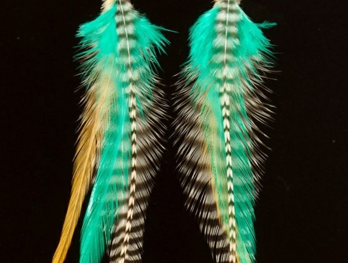 Boucles boucle d oreille plume de paon coloré bleu clair moderne