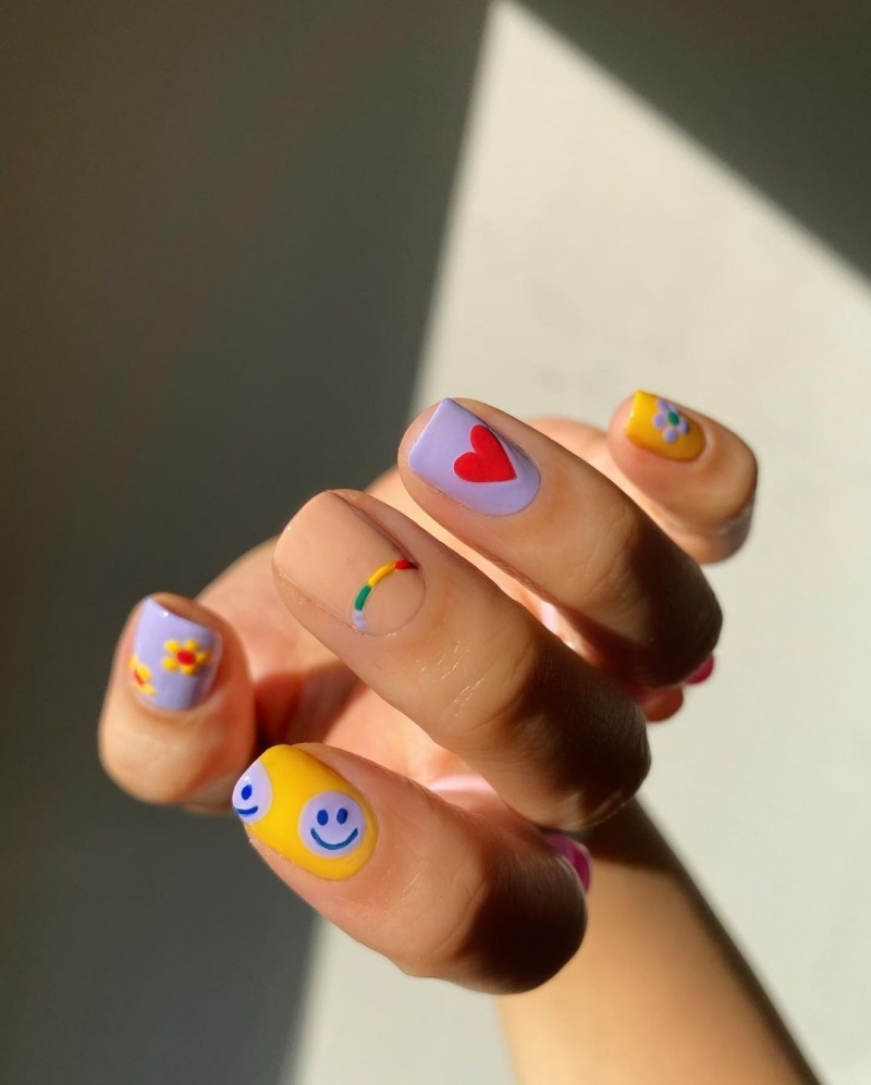 L’astuce de pro : l’Accent Nail. Si une manucure avec 10 ongles différents vous semble trop audacieuse, commencez par l’accent nail. Peignez 8 de vos ongles avec une couleur neutre ou une teinte principale, et réservez les 2 annulaires pour un design multicolore, un motif ou une couleur qui tranche. C’est une façon élégante et discrète d’adopter la tendance.