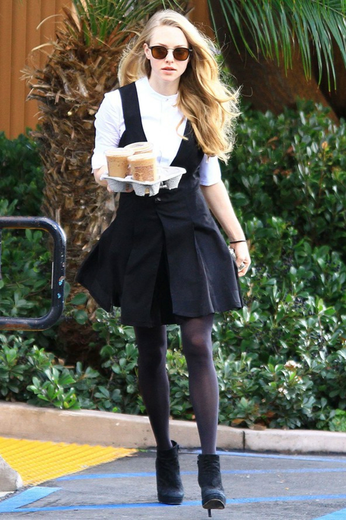 La solution ? Une chasuble noire ou gris anthracite, coupée dans une belle flanelle de laine, portée sur une chemise en soie blanche et avec des escarpins ou des mocassins. Des marques comme COS ou Theory proposent des modèles parfaits pour cet usage.